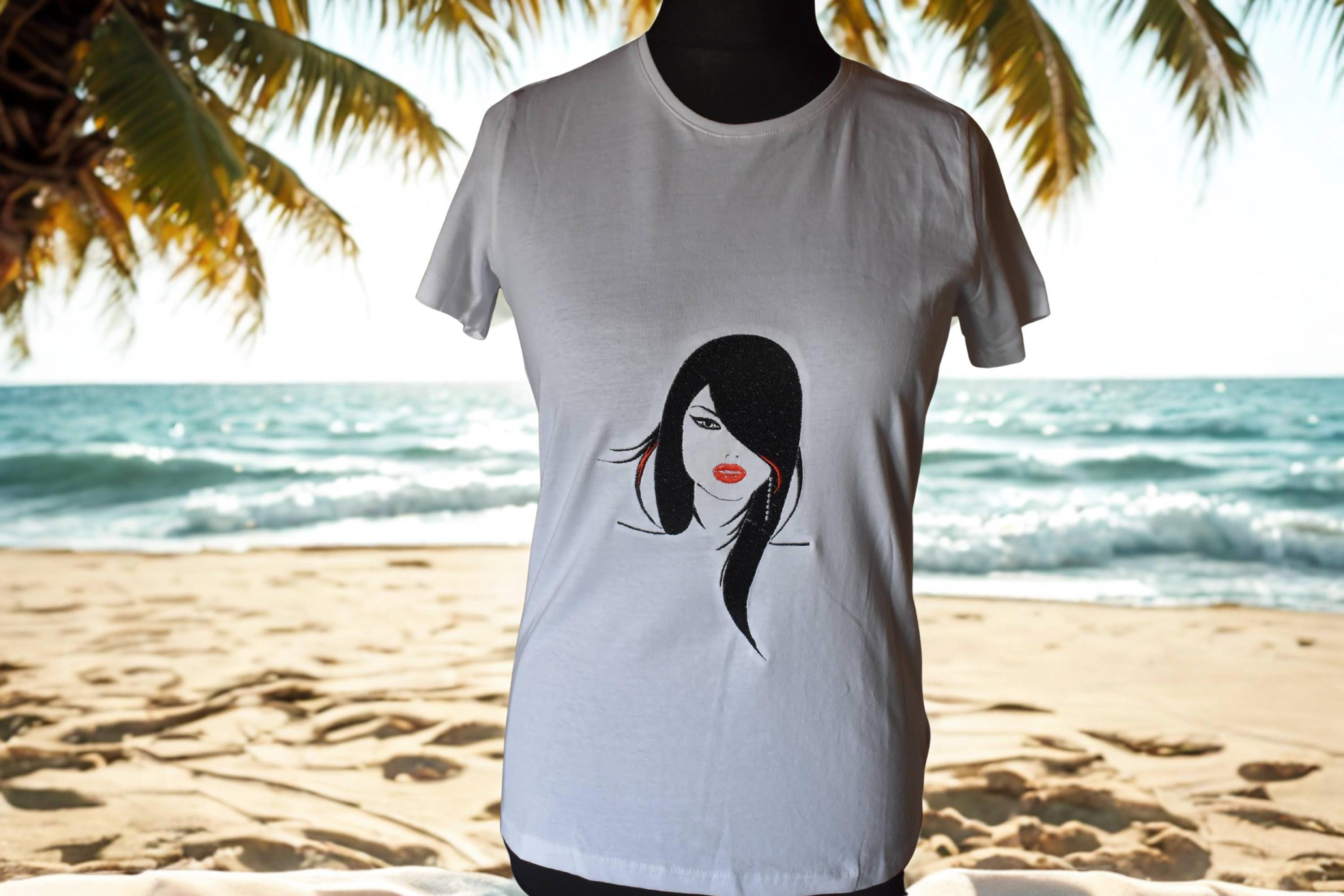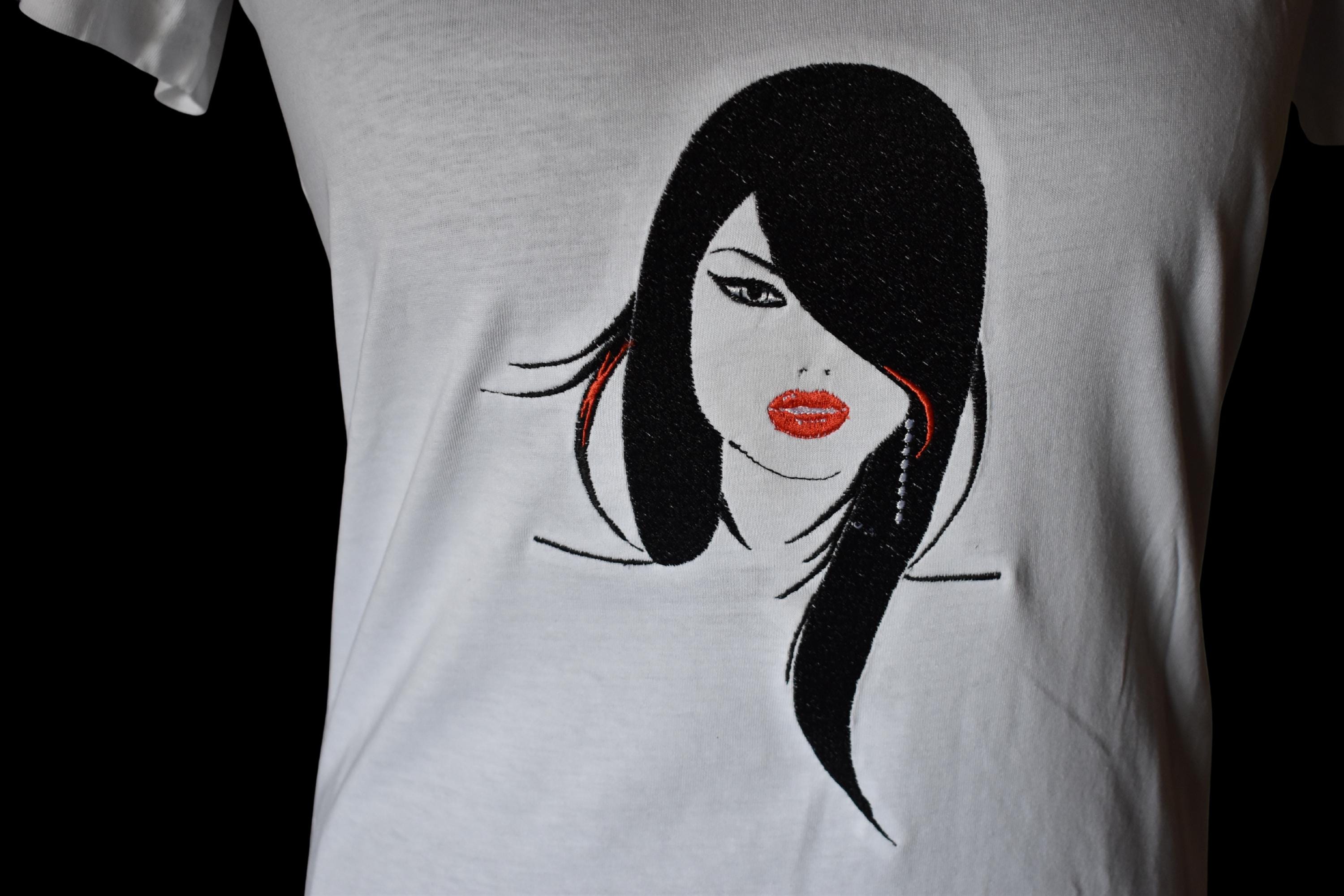 Embroidered T-shirt face woman