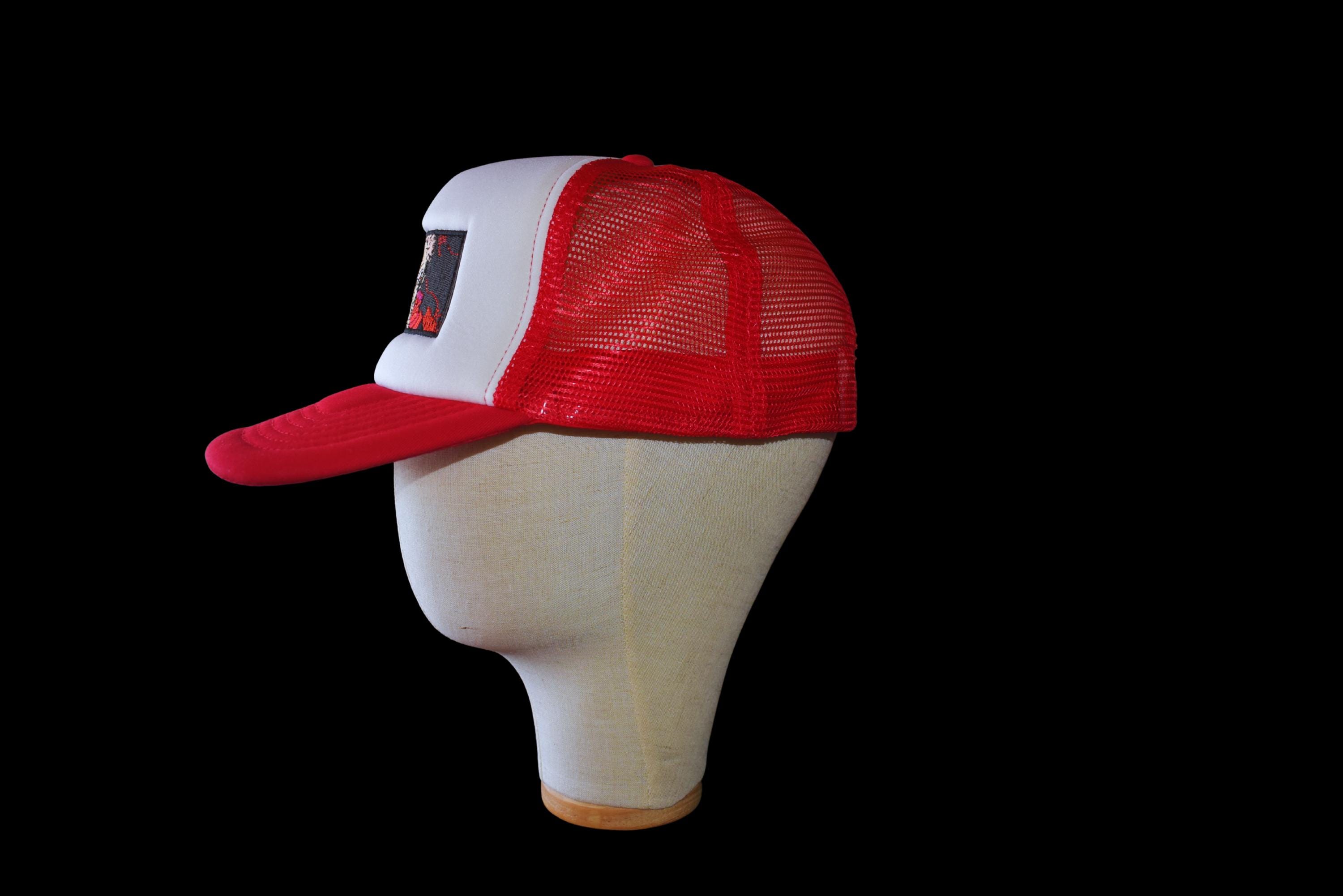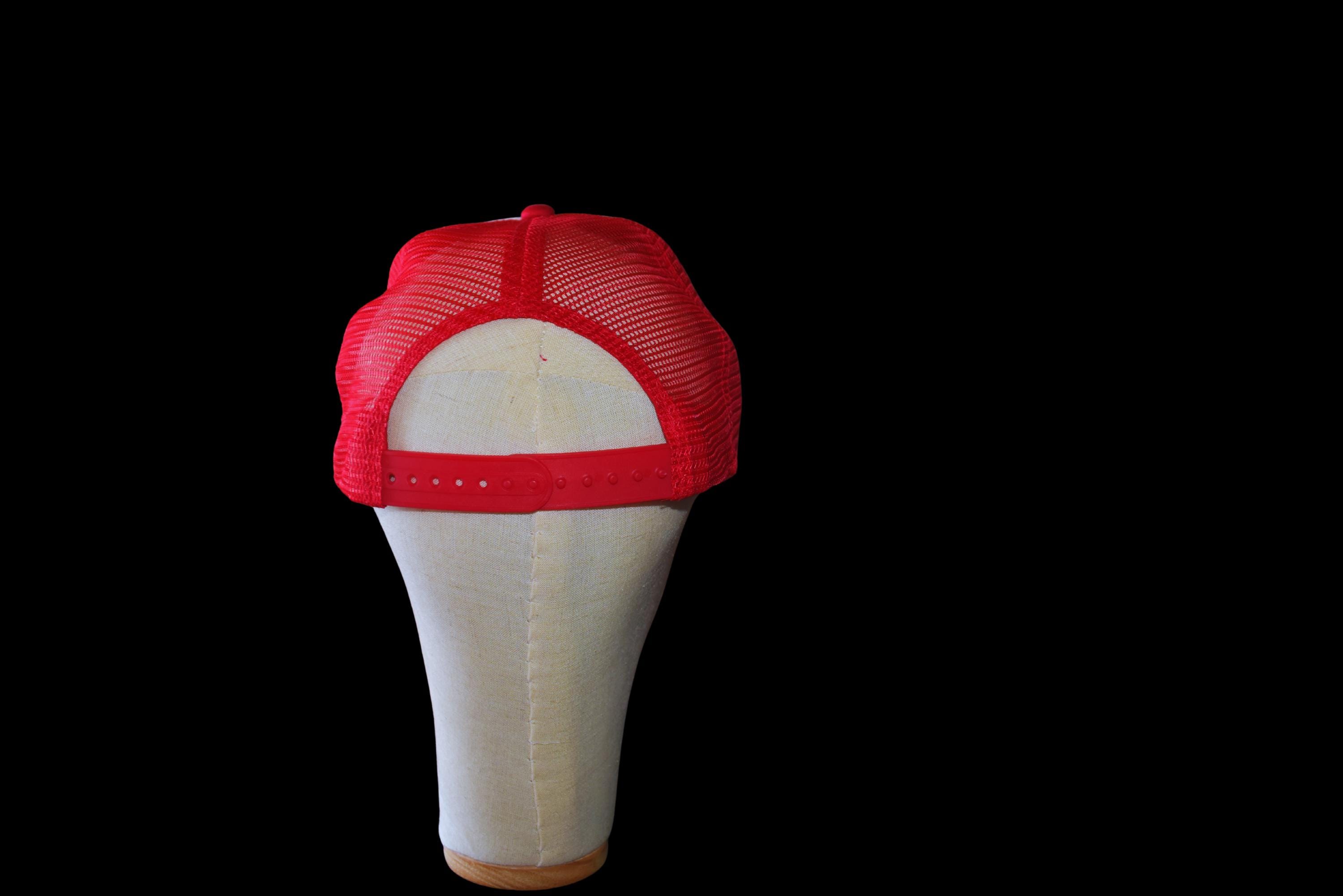 Vintage snapback trucker. Front panel 100% polyester, back panels 100% nylon. 5 panel cap with snap-tab adjustment.