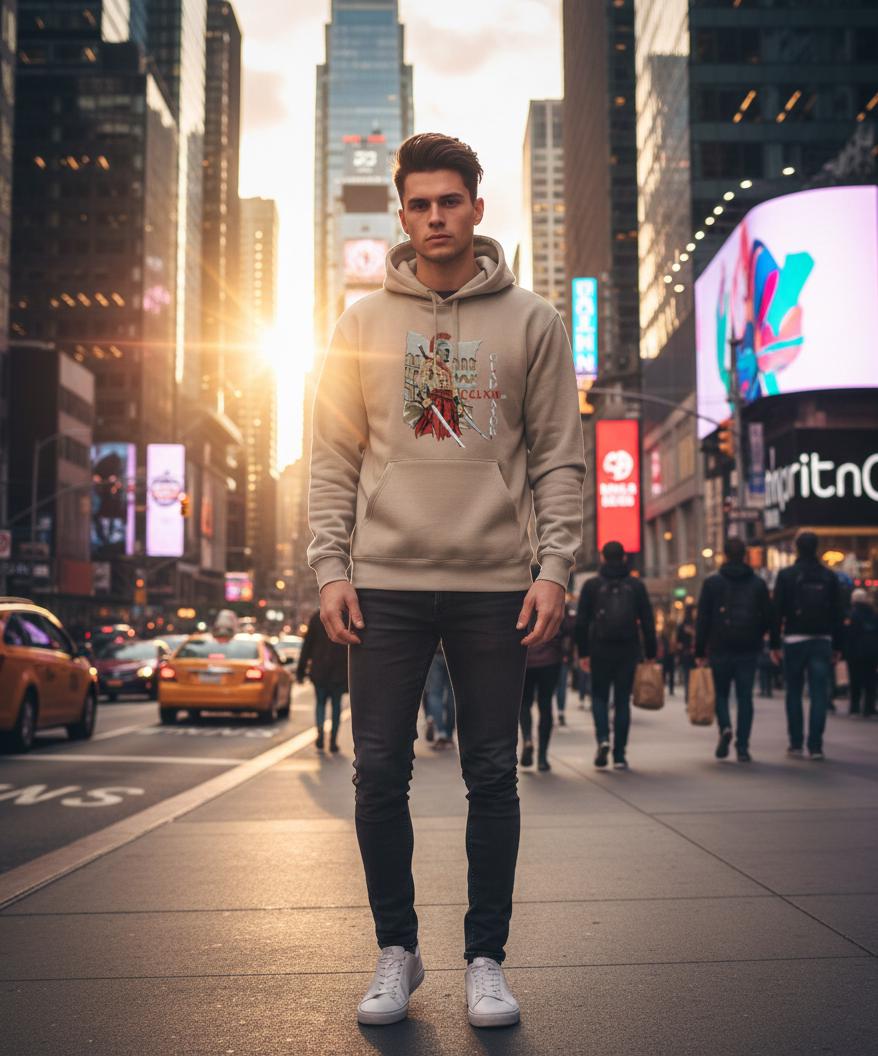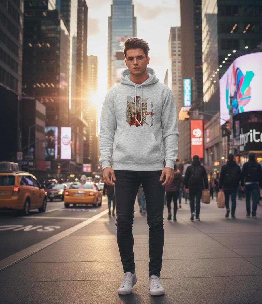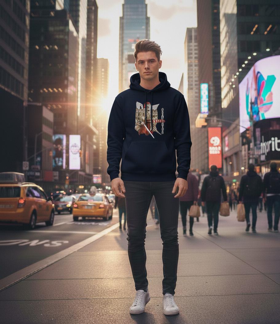 - Embroidery size: [ 27 x 27 cm ] - Technique: Embroidery on fabric - Base material: Fabric [80% cotton and 20% polyester, three-layer with hood and flat drawstring, set-in sleeves, neck tape, brushed interior, side-seam construction] - Yarns: Isacord 100% trilobate polyester fibre which guarantees shine and resistance