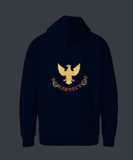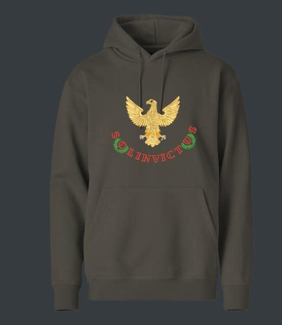✨ Embroidery of the Imperial Eagle, symbol of the ancient Roman Empire, and the typical writing SOL INVICTUS literally “Unconquered Sun” or “Never Defeated Sun”. In ancient Rome, he was a solar deity representing the eternal strength of the Sun, a symbol of power, victory, and rebirth. The cult of Sol Invictus became particularly important in the 3rd century AD, especially under Emperor Aurelian, who elevated him to the status of official deity of the Empire.