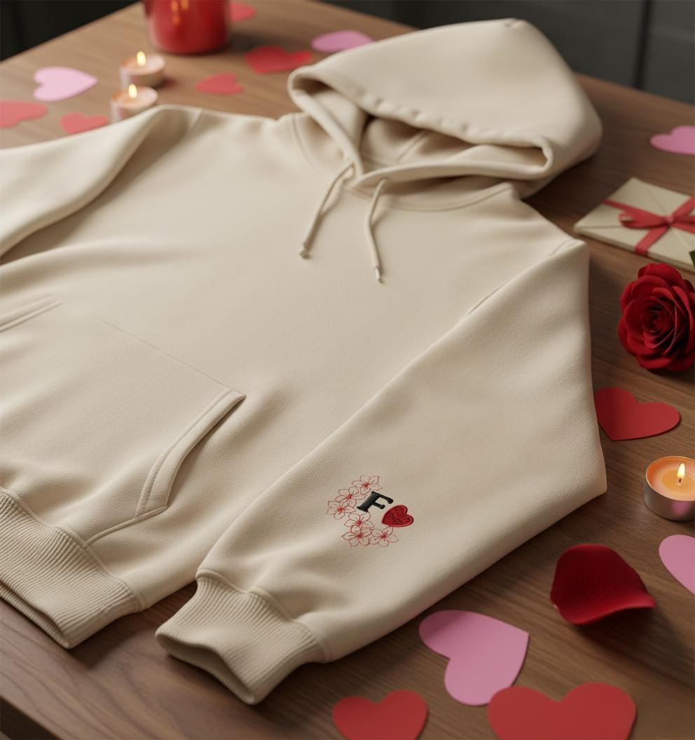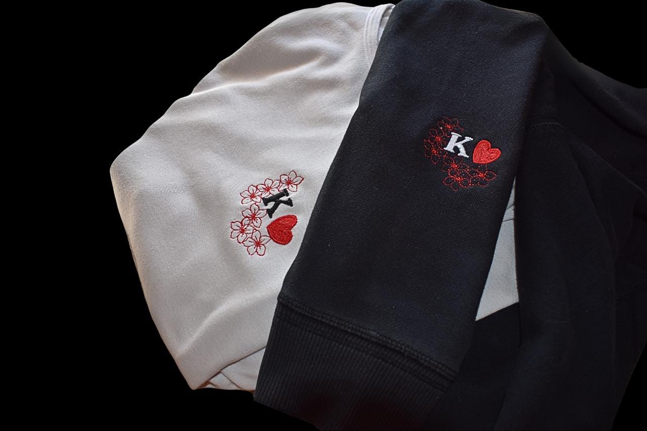 The embroidery is made either on the heart side or on the left sleeve of the sweatshirt, Please indicate your preferred side, also if you wish to insert your anniversary date, this will be embroidered either on the sleeve or on the heart side under the design in Roman numerals