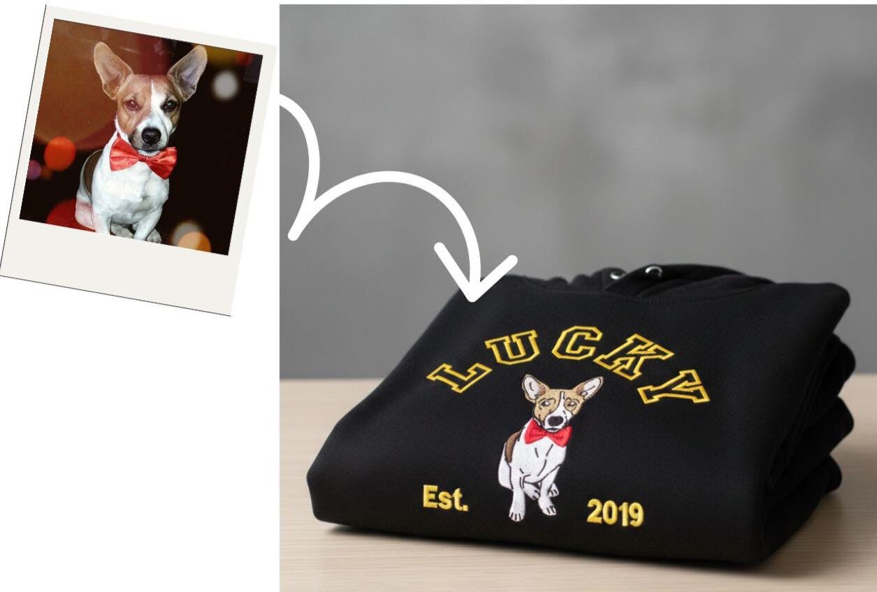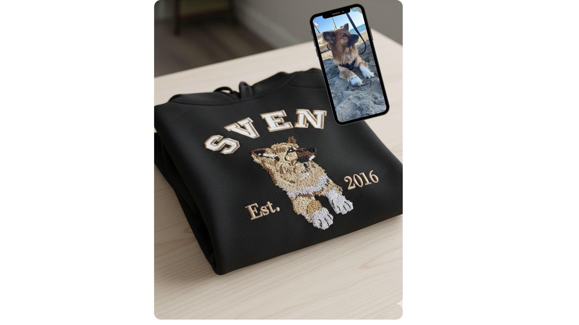 Personalized sweatshirts with pet photo embroidery, dogs and cats, pet photo portrait