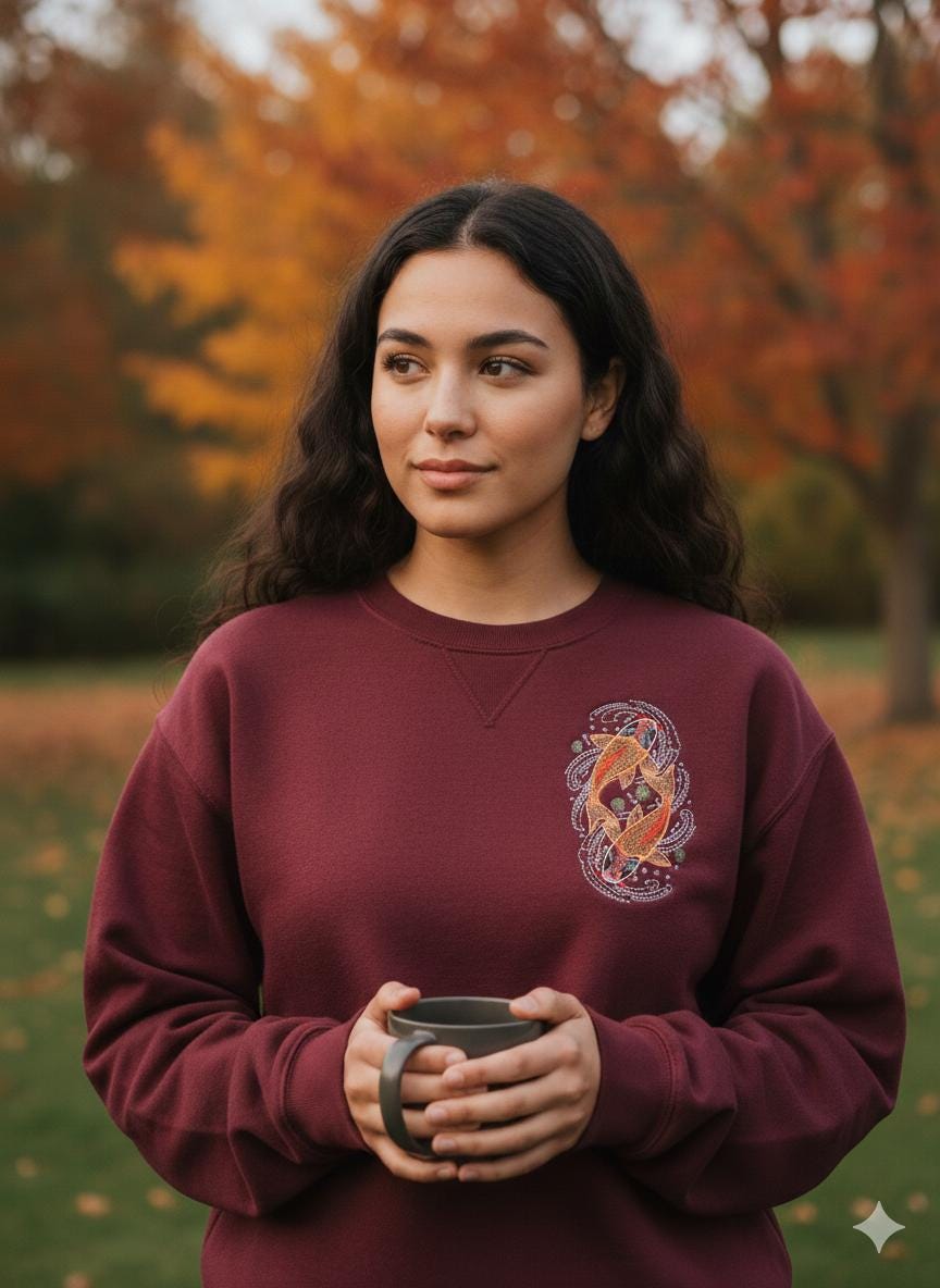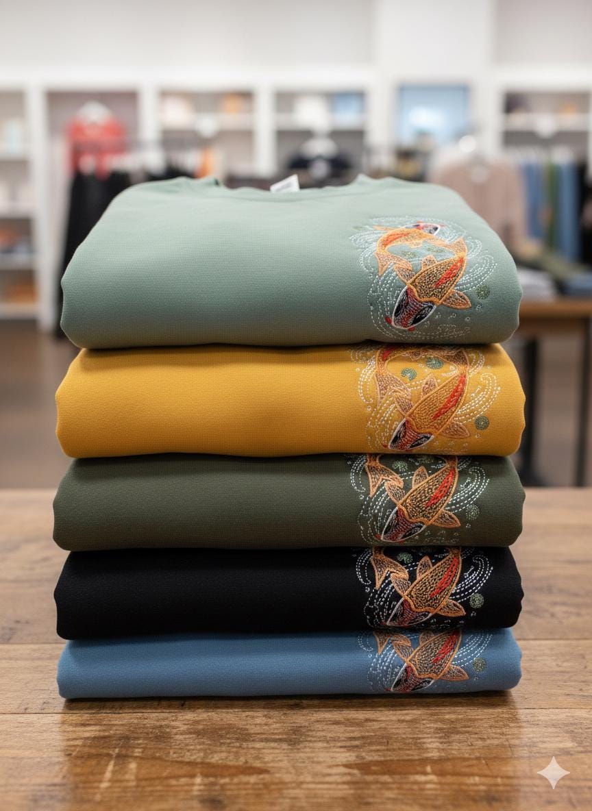 The Contour Waves: The white dotted dots surround the fish like hypnotic ripples, giving a sense of dynamism and fluidity to the design.
