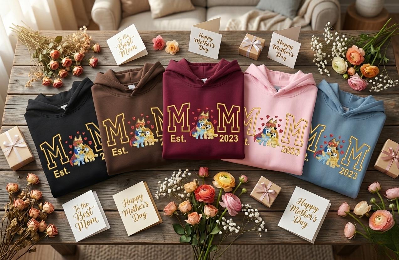 Celebra la tua "Era da Mamma" con questa felpa ricamata, dedicata alla regina della casa: Chilli Heeler.