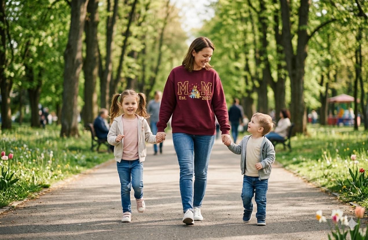 Con la scritta personalizzabile "MOM Est. anno", questo capo non è solo abbigliamento, ma un trofeo da indossare con orgoglio. Il ricamo ad alta densità dona una texture preziosa e resistente, perfetta per le mamme che corrono, giocano e amano proprio come Chilli.